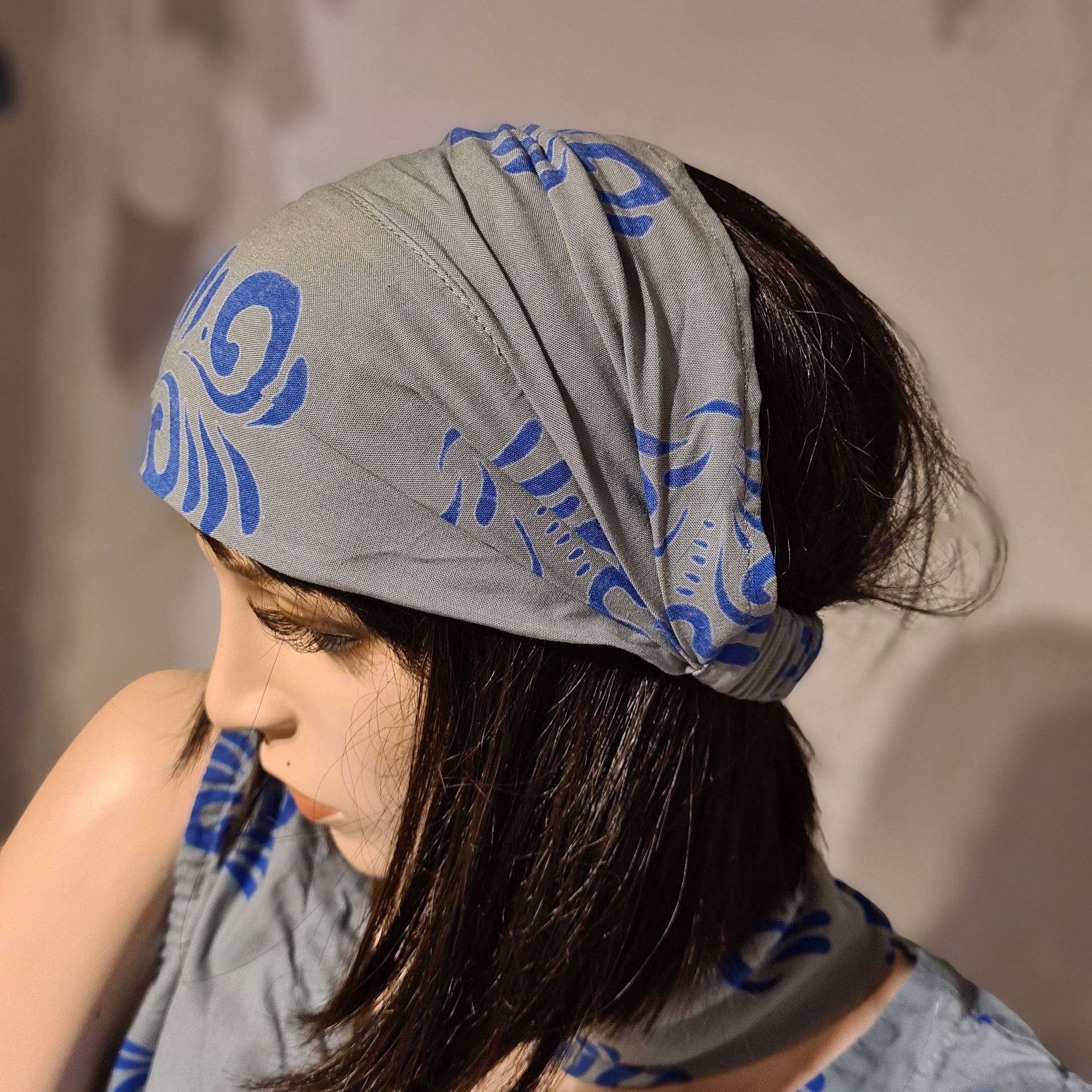 - Leuchtend blau umkettelt, auch einsetzbar als Kopftuch