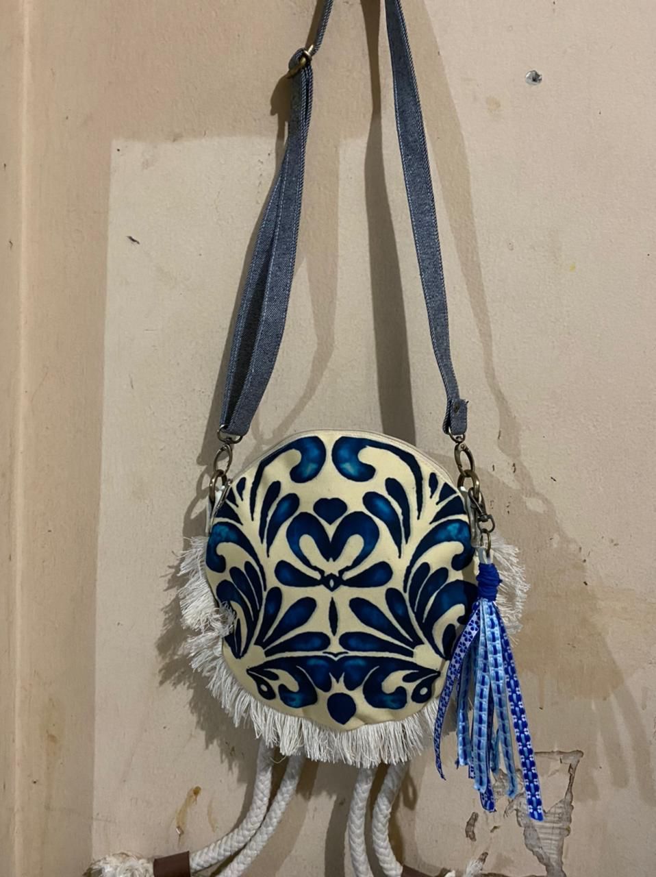 - Exklusiv aus gebrauchter Jeans und Denimstoff mit abwaschbarem Motiv in der Front. Schultertasche oder Crossovertasche mit „verwandelbarem Gurt“ aus Denimstoff